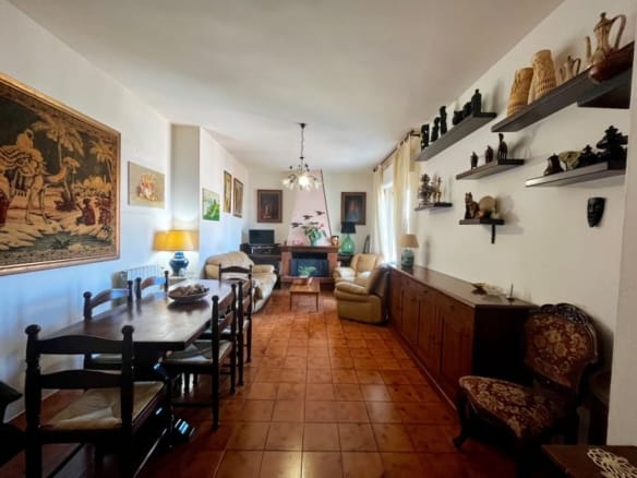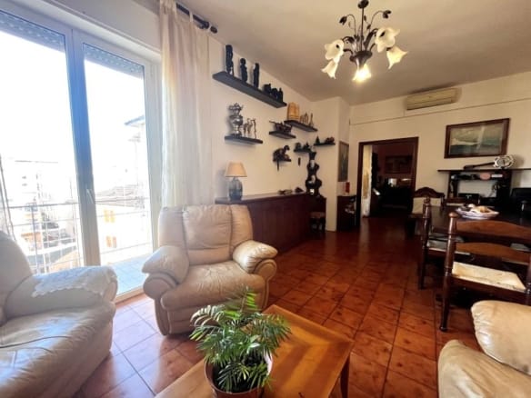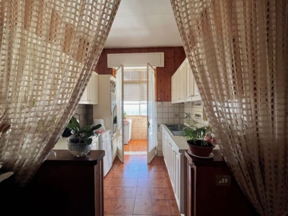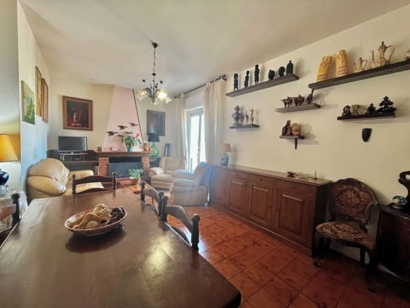 L’ingresso si apre su un’ampia zona giorno con angolo cottura e accesso diretto a un primo balcone coperto; proseguendo si trova un luminoso soggiorno con camino che conduce al secondo balcone scoperto. Nella zona notte sono presenti due spaziose camere matrimoniali e un bagno.