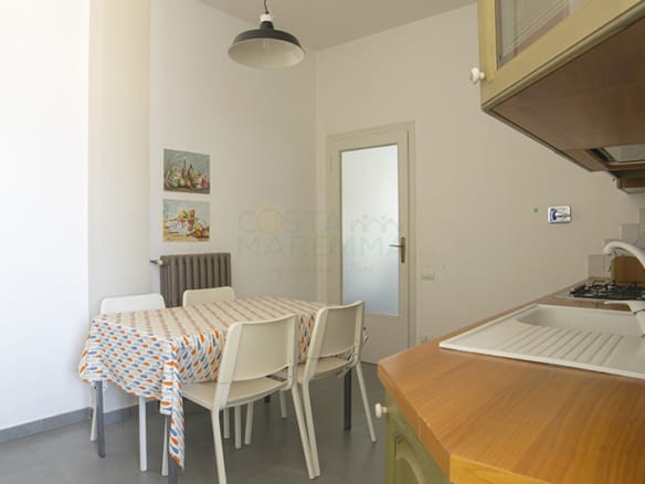 Costa Maremma offre per le vostre vacanze a Follonica un delizioso appartamento con vista mare, situato in zona Centro, a pochi passi dalla spiaggia e dalla vivace Via Roma. L’appartamento, al sesto piano di un condominio con ascensore, è composto da una cucina abitabile completa di lavastoviglie, microonde e balcone chiuso uso lavanderia, un soggiorno con divano letto matrimoniale, TV e terrazza attrezzata con vista mare, una camera doppia con balcone, una camera matrimoniale con balcone e un bagno con doccia. WiFi gratuito.